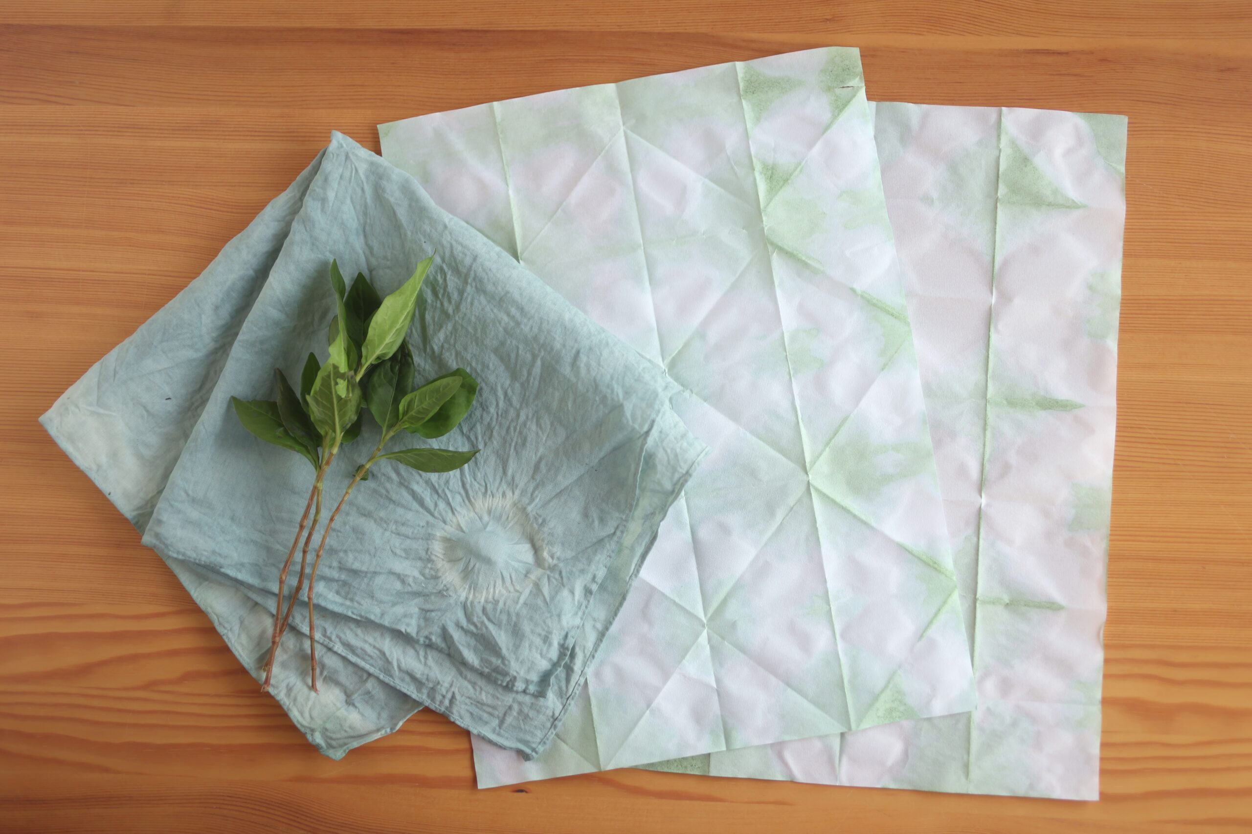 9/5(土)屋上庭園のタデアイを使う、生葉染めと折染