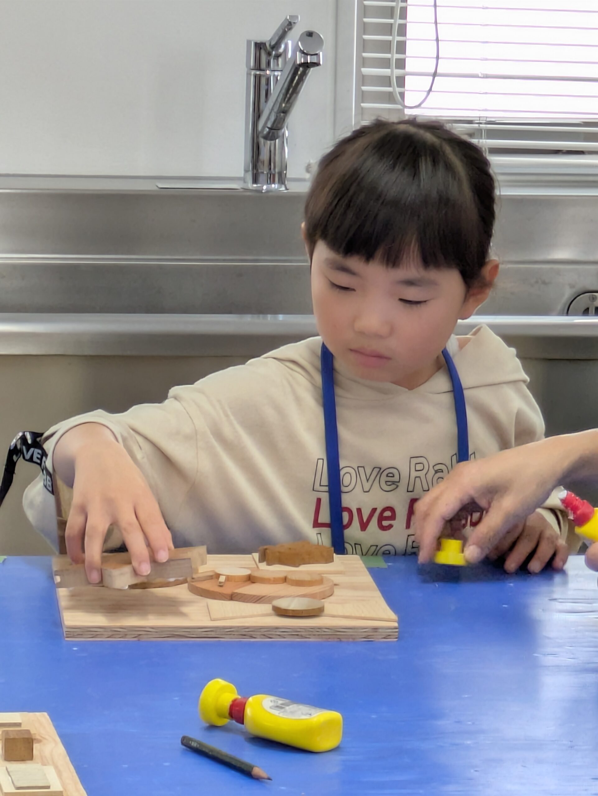 木目や節が海と山にみえる~という素敵な感性をもっている参加者、家から端材やパーツを持参さ