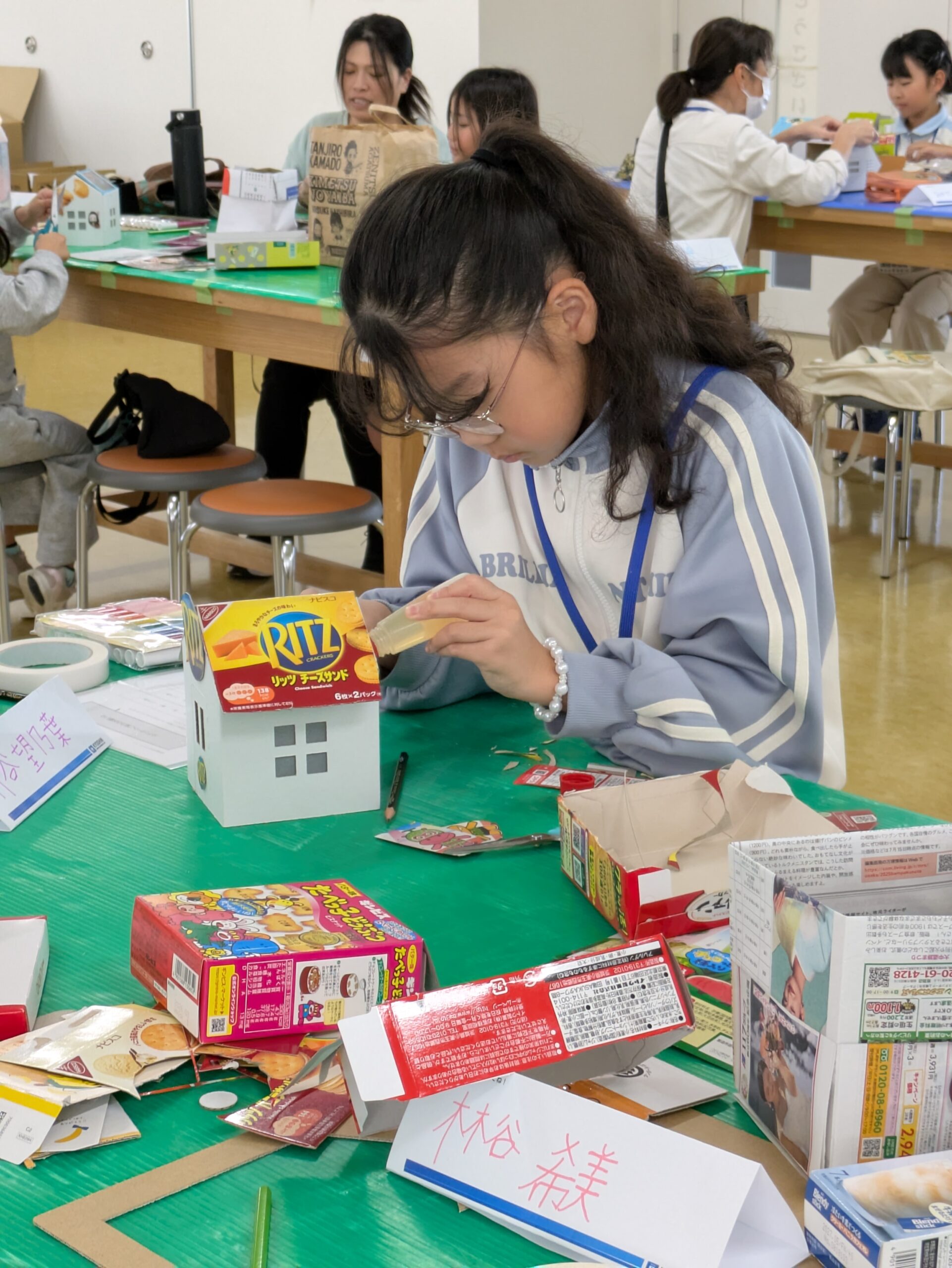 11月8日は、「お菓子の空き箱・段ボールの端材をリユース!家型ランプシェードをつくろう!づくりでした。