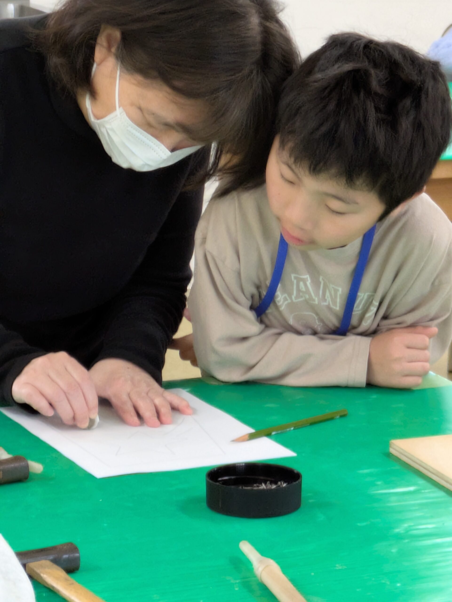 図案を移すときにキリも使いますが皆さん上手に使って穴をあけていましたね